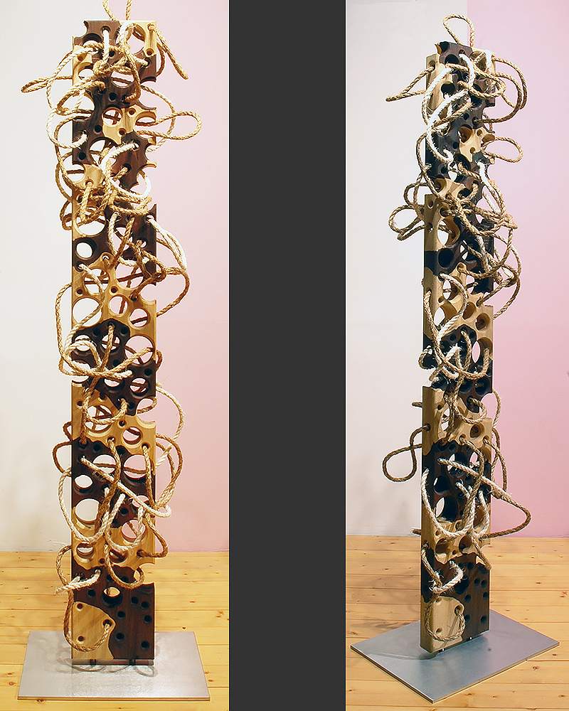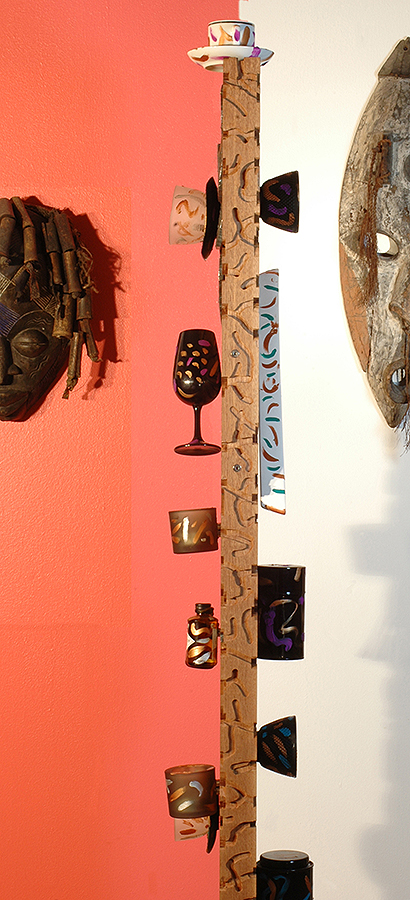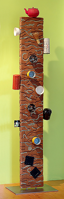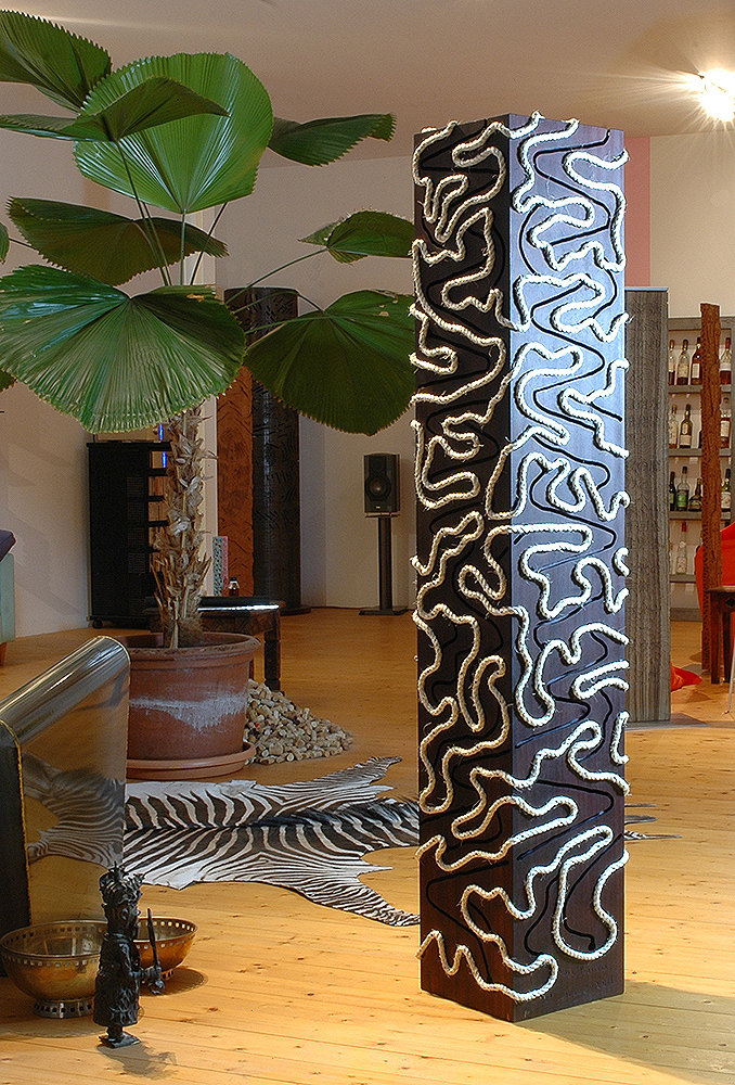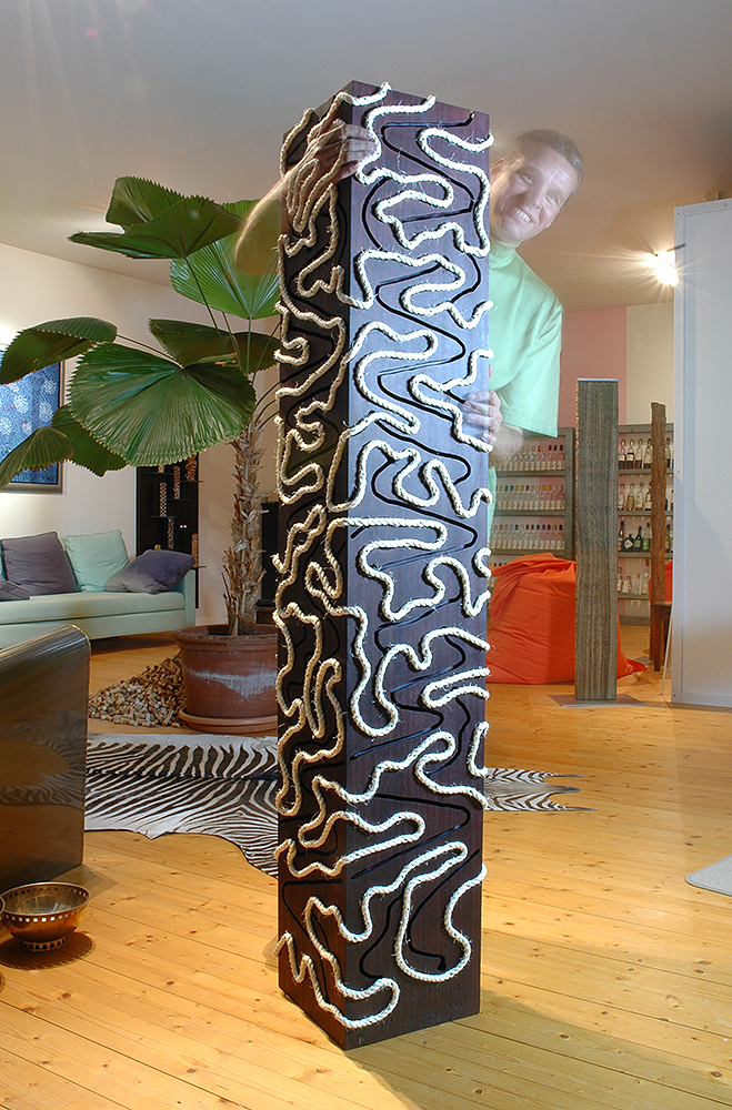 Bei diesen Objekten kommen verschiedenste Materialien und Bearbeitungstechniken gleichzeitig zum Einsatz. Alle Objekte sind handgefertigte Unikate.